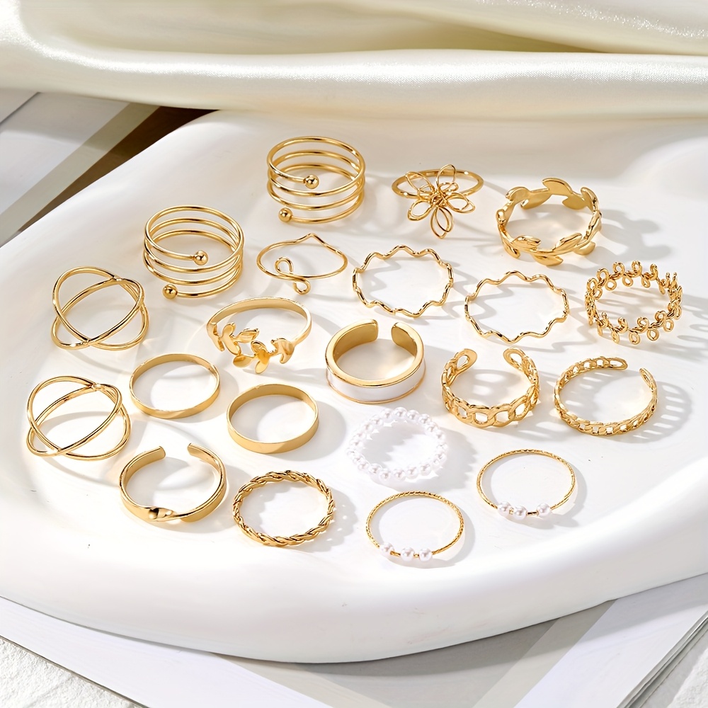 Golden and Silvery Butterfly Love Geometric Ring Set Fashionable Women's Rings for Vacation Party Wedding Versatile Jewelry