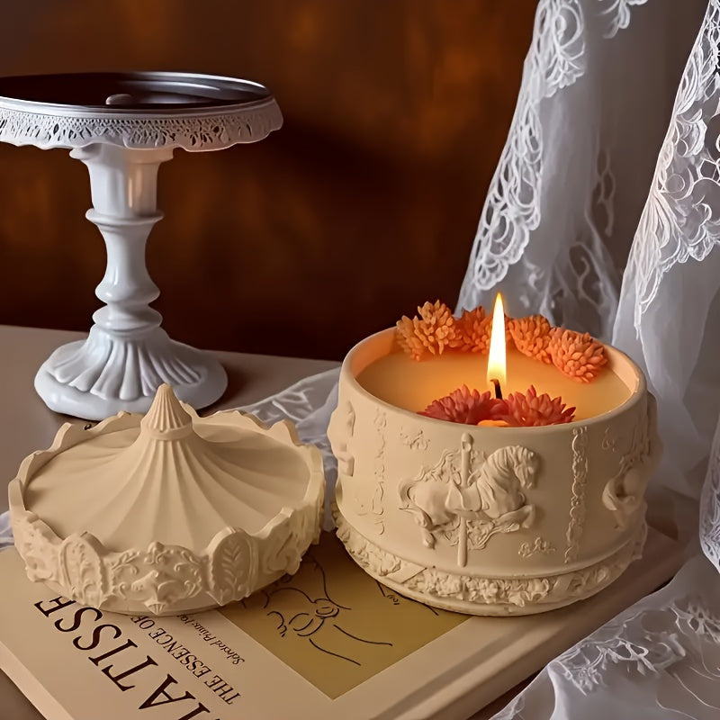 2pcs/set Merry-Go-Round Storage Box Silicone Molds, Rotating Carousel Pattern